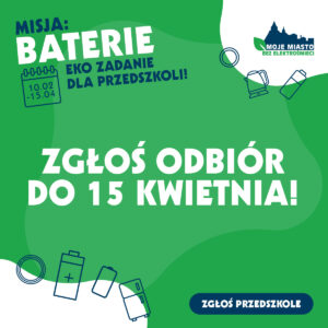 📢 Drodzy Uczestnicy! Ze względu na ogromne zainteresowanie naszym konkursem dla placówek przedszkolnych zdecydowaliśmy się wydłużyć termin składania zleceń odbioru elektrośmieci do 15 kwietnia. Bardzo cieszy nas Wasze duże zaangażowanie i aktywny udział w zbiórce. Aby wyjść Wam naprzeciw, postanowiliśmy dać Wam więcej czasu na organizację zbiórki oraz zliczenie zebranych baterii. 📅 Na zgłoszenia odbioru […]